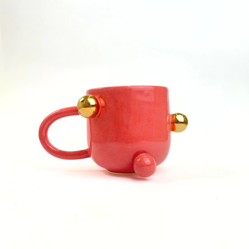 A Caneca Bruxelas é puro charme na hora do café. Com sua forma divertida e bolinhas alternadas — metade esmaltadas em ouro 24k — ela combina funcionalidade com um toque artístico que é a cara da Marô.