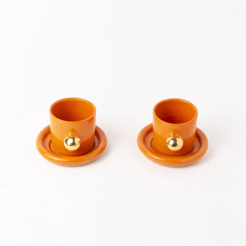 Jogo de Xícaras Lina com duas unidades, conjunto com duas xícaras e dois pires.
