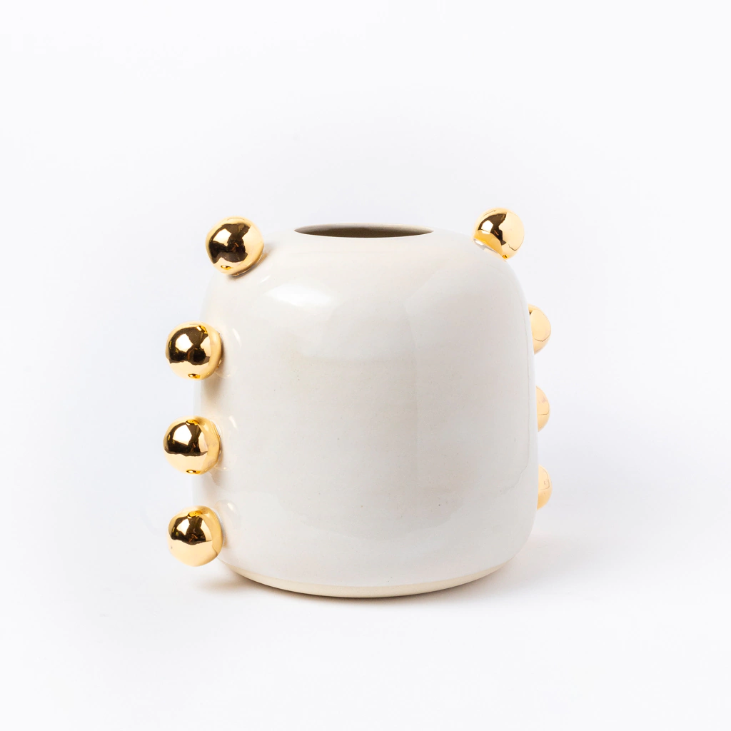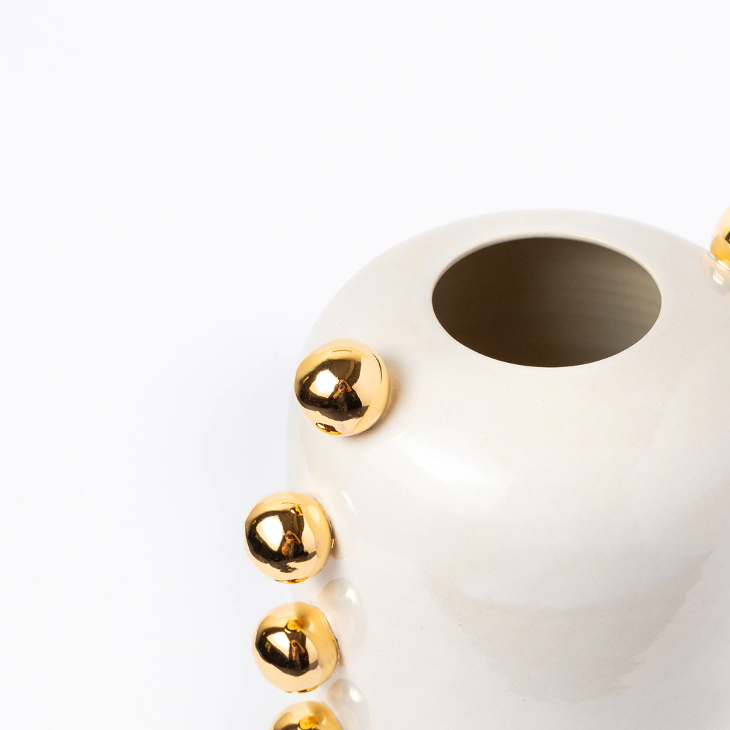 Vaso Ana – Cerâmica com Bolinhas em Ouro 12k